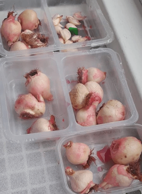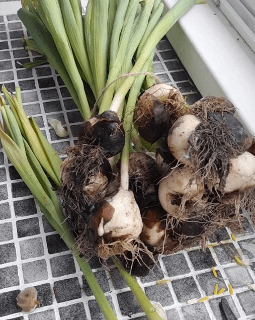 Сложите луковицы в коробку или ящик и отправьте в сухое, тёмное место. За лето они заметно уменьшатся в размере — это нормально.